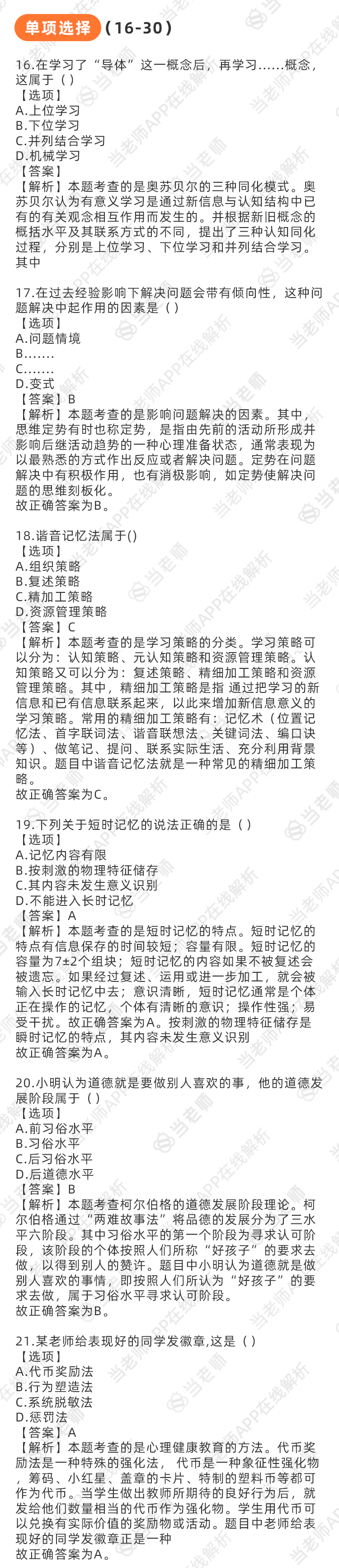 2021年四川特岗教师考试试题答案(5月9日更新)