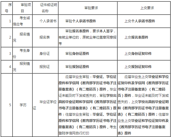 以上所有证书、证件必须提供原件和复印件1份,有关证明提供原件。每位考生自备纸质档案袋1个,档案袋封面填写考生序号,姓名,报考学科,上交所有材料登记。将所有复印件和证明原件审查后上交留档,证书和证件原件退回。