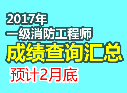 2017年度一级注册消防工程师资格考试成绩于2018年2月底发布。广大考生可登录中国人事考试网或者考呗网一级消防工程师考试网的"成绩查询"栏目下,进入一级消防工程师考试查分入口