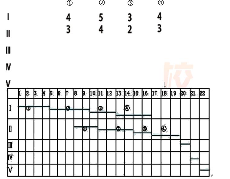 (二)路面施工主要机械设备的配置 (1)拌合设备:沥青混凝土搅拌设备 (2)摊铺平整机械:沥青混凝土摊铺机,平地机 (3)装运机械:装载机和运输车辆; (4)压实设备:光轮、轮胎和双轮双振动压路机 问题: 2、指出并改正底基层碾压错误,并阐述沥青混合料的初压设备。 考呗网答案: (1) 错误之处:底基层直线段由中间向两边,曲线段向外侧向内侧碾压 正确做法:由低到高 (2)沥青混合料初压宜采用钢轮压路机静压1-2遍。 问题: 3、沥青混合料碾压温度的确定因素 考呗网答案:压路机的碾压温度应根据沥青和沥青混合料种类、压路机类型、气温、层厚等因素经等因素经试压确定。 问题: 4、公示牌还需补充设置哪些?(参考教材P283) 考呗网答案:施工现场的进口处应有整齐明显的“五牌一图”。 (1)五牌:工程概况牌、管理人员名单及监督电话牌、消防保卫牌、安全生产(无重大事故)牌、文明施工牌; (2)一图:施工现场总平面图。 问题: 5、完善横道图,并计算工期 考呗网答案: ![]() 案例十八: 1.背景 某道路工程施工采用了包工包地方材料的合同。在一个关键工作面上又发生了几种原因造成临时停工。6月20日至6月26日,承包人的施工设备出现了从未出现过的故障。应于6月24日交给承包人的后继图纸直到7月10日才交给承包人;7月7日到7月12日施工现场发生了该季节罕见的特大暴风,造成了7月11到7月14的该地区的供电全面中断。 2.问题 (1)由于几种情况的暂时停工,承包人在7月15日向监理工程师提交延长工期25d,成本损失费人民币2万元/d(此费率已经监理工程师核准)和利润损失费人民币2000元/d的索赔要求,共计索赔款55万元。承包商的这些要求能否得到支持? 3.考呗网分析与答案 (1)可以批准的工期索赔18d,费用索赔额为24万元人民币,原因如下: •6月20日至6月26日承包人的施工设备出现了从未出现过的故障属于承包人应承担的风险,不应考虑承包人的费用索赔要求。 •6月27日至7月6日,是由于业主迟交图纸引起的,为业主应承担的风险,可以考虑工期和费用的索赔,但不应考虑承包人的利润要求,索赔额为10天×2万/天=20万元。 •7月7日至7月12日特大暴雨属于双方共同的风险,可以考虑承包人工期索赔,但不应考虑费用索赔要求。 •7月13日至7月14日的停电属于有经验的承包人无法预见的自然条件变化。为业主应承担的风险,可以考虑工期和费用索赔,但不应考虑承包人的利润要求,索赔额为2天×2万/天=4万元。 2.问题 (2)若承包人对因业主原因造成窝工损失进行索赔时,要求设备窝工损失按台班计算,人工的窝工损失按工日计价该要求是否合理?应如何处理? 3.考呗网分析与答案 (2)不合理。窝工闲置的设备应按折旧费或停滞台班费或租赁费计价,不包括运转费部分;人工费损失应考虑这部分工作的工人调做其他工作时功效降低的损失费用,一般用工日单价乘以一个测算的降效系数计算这一部分损失,而且只能按成本费用计算,不包括利润。 案例十九: 背景资料 A公司中标承建某污水处理厂扩建工程,新建构筑物包括沉淀池、曝气池及进水泵房,其中沉淀池采用预制装配式预应力混凝土结构,池体直径为40m,池壁高6m,设计水深4.5m.鉴于运行管理因素,在沉淀池施工前,建设单位将预制装配式预应力混凝土结构变更为现浇无粘结预应力结构,并与施工单位签订了变更协议。 项目部重新编制了施工方案,列出池壁施工主要工序:①安装模板、②绑扎钢筋、③浇筑混凝土、④安装预应力筋、⑤张拉预应力。同时,明确了各工序的施工技术措施,方案中还包括满水试验。 项目部造价管理部门重新校对工程量清单,并对底板、池壁、无粘结预应力三个项目的综合单价及主要的措施费进行调整后报建设单位。 施工过程中发生如下事件:预应力张拉作业时平台突然失稳,一名张拉作业人员从平台上掉落到地面摔成重伤;项目部及时上报A公司并参与事故调查,查清事故原因后,继续进行张拉施工。 问题: 1.将背景资料中工序按常规流程进行排序(用序号排列)。 考呗网答案:①安装模板、②绑扎钢筋、④安装预应力筋、③浇筑混凝土、⑤张拉预应力。 问题: 2.沉淀池满水试验的浸湿面积由哪些部分组成?(不需计算)。 考呗网答案:浸湿面积由池壁(不含内隔墙)、池底两部分组成。 问题: 3.根据有关事故处理原则,继续张拉施工前还应做好哪些工作? 考呗网答案:事故处理应执行四不放过原则:事故原因未查明不放过、事故责任者没有得到处罚不放过、相关人员没有得到安全教育不放过、没有制定整改措施不放过。 因此针对本例,组织张拉前还应(1)针对查明的事故原因,对原先没有考虑或考虑不足的安全隐患制定更为系统的防护措施;(2)对直接作业人员进行更深层的安全技术交底;(3)重新组织安全培训,考核合格后持证上岗。 案例二十: 背景资料 A公司中标某市污水管工程,总长1.7公里。采用φ1.6-1.8m混凝土管,其埋深为-4.1~-4.3m,各井间距8-10m.地址条件为粘性土层,地下水位置在距离地面-3.5m.项目部确定采用两台顶管机同时作业,一号顶管机从8#井作为始发井向北顶进,二号顶管机从10#井作为始发井向南顶进。工作井直接采用检查井位置(施工位置如下图),编制了顶管工程施工方案,并已经通过专家论证。 ![]() 施工过程中发生如下事件: (1)因拆迁原因,使9#井不能开工。第二台顶管设备放置在项目部附近小区绿地暂存28天。 (2)在