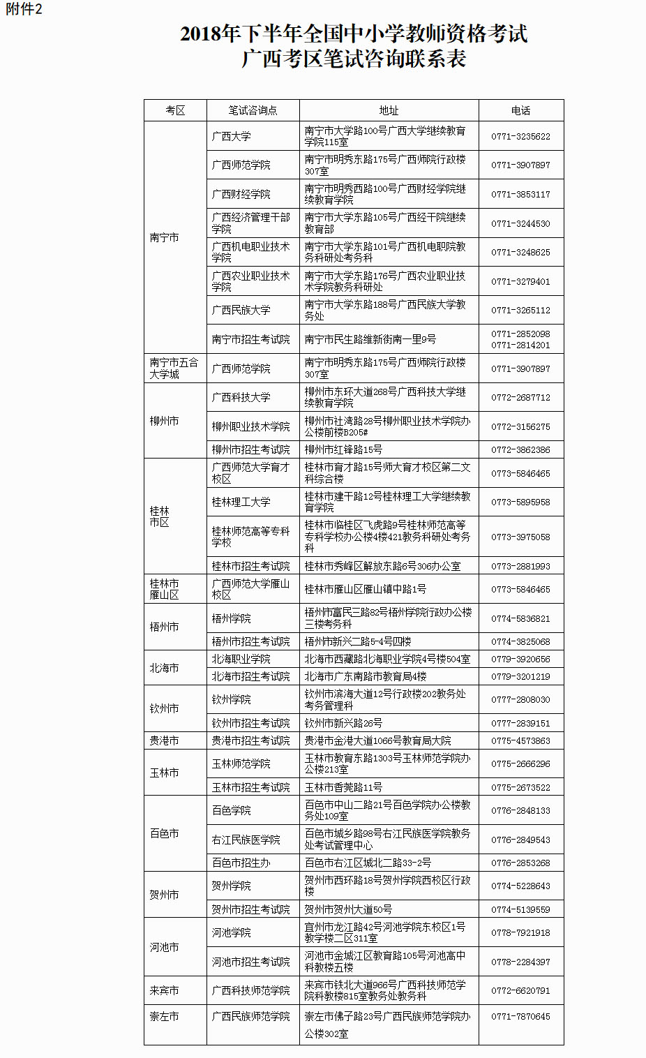 广西2018年下半年中小学教师资格证笔试联系方式 时间:2018-08-14 来源:未知 作者:admin 点击:300次 广西2018年下半年中小学教师资格证笔试联系方式 2018年下半年广西教师资格证报名时间已经公布,广西2018年下半年中小学教师资格证笔试联系方式如下: (责任编辑:admin)