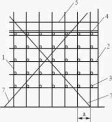 A.立杆 B.横向水平轩(小横杆) C.纵向水平杆(大横杆) D.抛撑