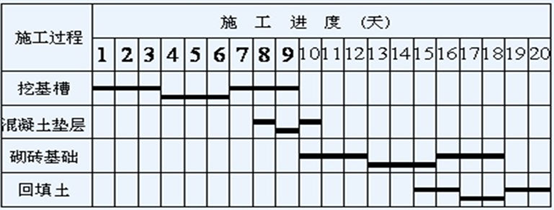 【背景资料】某房屋建筑的基础工程,由挖基槽.棍凝士垫层.砌砖基础和回填土共四个施工过程组成,现在拟采用四个专业工作队组织流水施工,横道图进度计划表如下图所示。