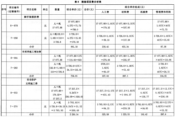 6.可竞争措施项目仅计取“脚手架搭拆费”、“冬雨季施工增加费”。