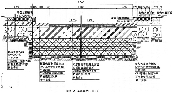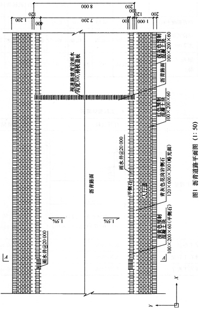 根据图1、图2和2013年《全国统一市政工程预算定额河北省综合基价》,按上题计算的工程量,彩色水磨石砖单价为每平方米80元,沥青混凝土每立方米960元,便道商品混凝土垫层C15—40,沥青面层按机械带自动找平铺设,完成沥青混凝土面层工程量清单及报价,并分析综合报价。