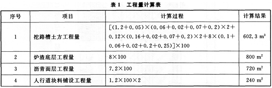 根据图1、图2,设道路中心线长100m,按照2012年《全国统一市政工程预算定额河北省