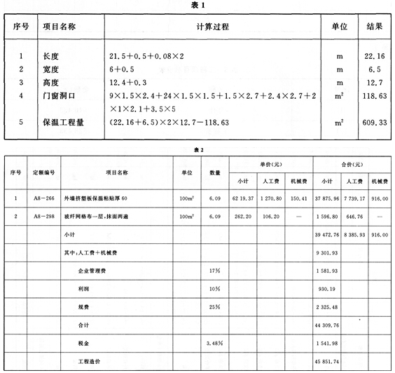 2.外墙保温项目造价(不计算措施项目费用,按包工包料费率计算)。