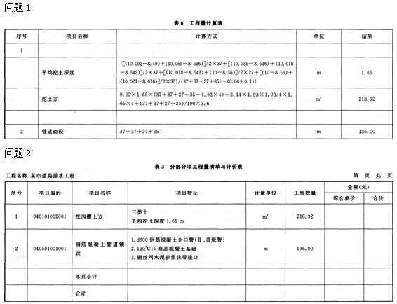 根据第一题的已知条件及施工图,请按下面问题要求编制桩号O+001~0+137段北侧排水管道分部分项工程量清单并填入表中。