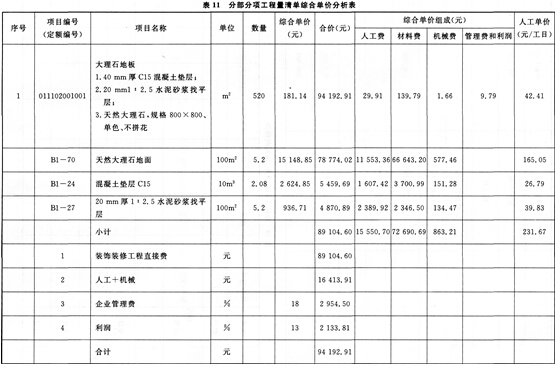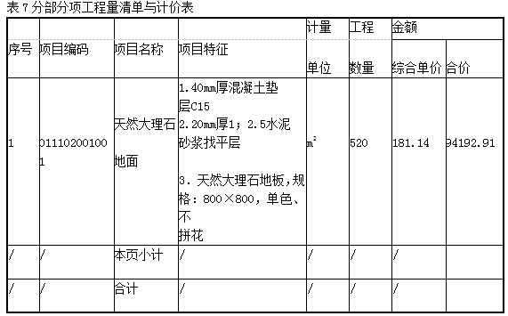 假设按题一条件计算出的清单工程量见表2: