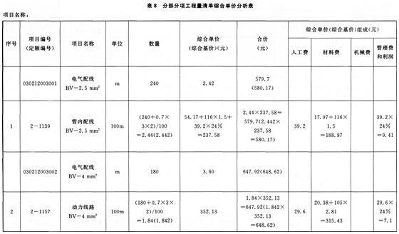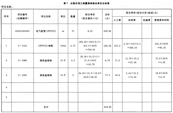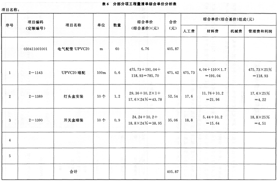 2.计算照明、插座系统中UPVC管敷设、管内穿线项目综合单价,填写相应“分部分项工程量清单综合单价分析表”。