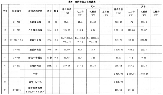 该工程避雷系统工程量见表3: