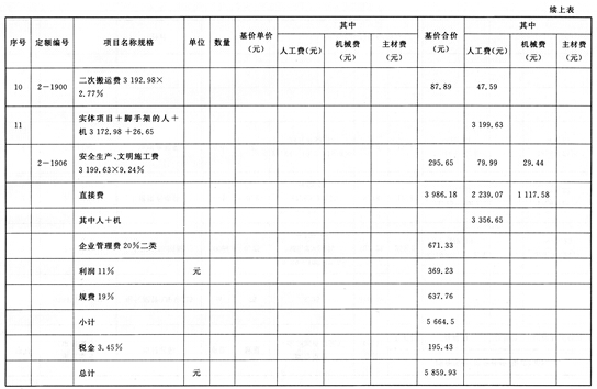 7.可竞争措施项目仅计取“脚手架搭拆费”、“生产工具用具使用费”。