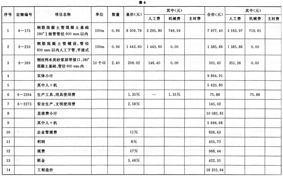 2.采用人工下管方式铺设φ600钢筋混凝土排水管(1级管,每根管长为4m,管口形式采用平接式),管道中心线长96m,φ600钢筋混凝土排水管的单价为150元/m;