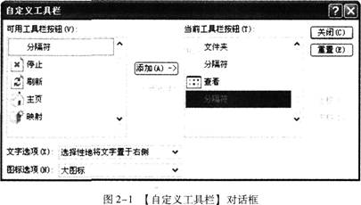 步骤1单击【查看】菜单→【工具栏】→【自定义】命令,弹出图2-1所示对话框。