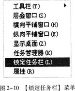 步骤2右键单击【任务栏】,选择右键菜单中的【锁定任务栏】,如图2-10所示。