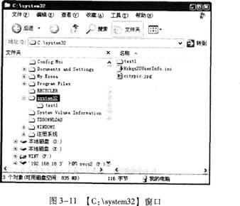 步骤1单击【文件夹】列表中的【system32】文件夹,如图3-11所示。