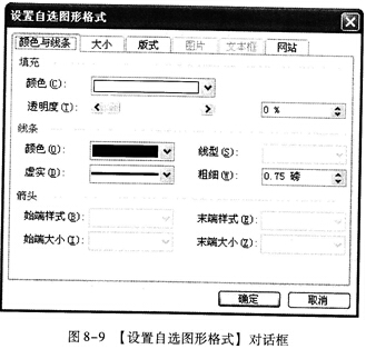 步骤1单击【格式】菜单→【自选图形】命令,打开【设置自选图形格式】对话框,如图8-9所示。