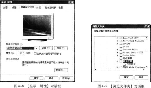 步骤3单击【屏幕保护程序】下拉列表框,在弹出的下拉菜单中选择【图片收藏幻灯片】,如图4-8所示。