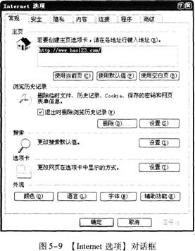 步骤1单击【工具】菜单→【Internet选项】命令,打开【Internet选项】对话框,如图5-13所示。