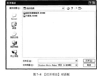 步骤2单击【文件】菜单→【打开项目】命令,打开对话框,如图7-8所示。