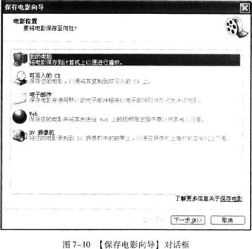 步骤10单击【文件】菜单→【保存电影文件】命令,打开【保存电影向导】对话框,如图7-10所示。