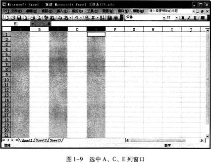 步骤3按住键盘上的(Ctrl)键单击E列,如图1-9所示。