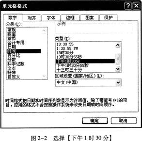 步骤4在【类型】列表中选择【下午1时30分】,如图2—2所示。