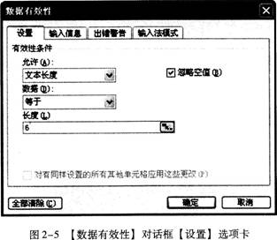 对当前选定的学号区域,设置只允许输入6位字符长度,忽略空值(不要在工作表中输入任何值)。