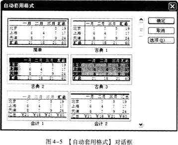 步骤2单击【格式】菜单→【自动套用格式】命令,打开【自动套用格式】对话框,如图4-5所示。