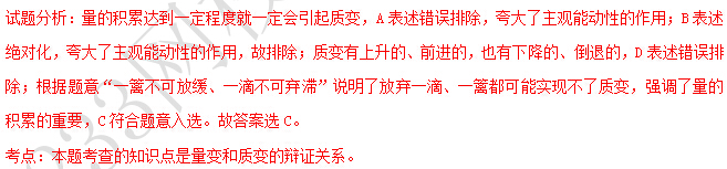 A.离开了人的主观能动性,量变不会引起质变 B.只要坚持不懈地努力,就能改变事物变化的必然趋势 C.没有渐进的量的积累,任何质变都不可能发生 D.任何事物的量变引起的质变都是前进上升运动