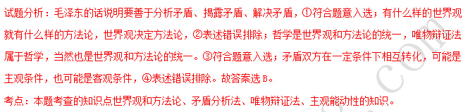 毛泽东说“辩证法的宇宙观,主要地就是教导人们要善于去观察和分析各种事物的矛盾的运动,并根据这种分析,指出解决矛盾的方法。”对此理解正确的是( )