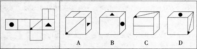 左边给定的是纸盒的外表面,下面哪一项能由它折叠而成?( )