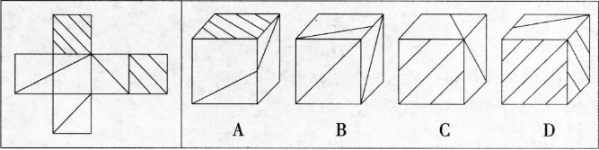 左边给定的是纸盒的外表面,下面哪一项能由它折叠而成?( )