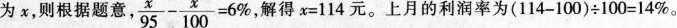 某手机的进价比上月低了5%,但电器商店仍按照上月售价销售,其利润率提高了6个百分点.那么该电器商店上个月销售该手机的利润率是( )。