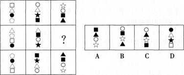 每列三个图形含有的小图形没变,只是相对位置改变。每行相同位置的小图形位置变化规律一致,可以直接选C。