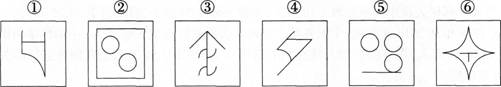 把下面的六个图形分为两类,使每一类图形都有各自的共同特征或规律,分类正确的一项是( )。