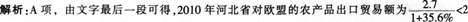 A.2010年,河北省对欧盟的农产品出口贸易额高于对东盟的农产品出口贸易额