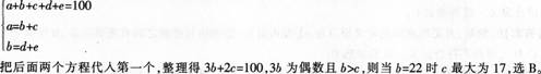 设一至五班种的棵数分别为a、b、c、d、e,则有a>b>c>d>e,且有: