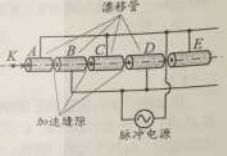 如图所示,某直线加速器由沿轴线分布的一系列金属圆管(漂移管)组成,相邻漂移管分别接在高频脉冲电源的两极。质子从K点沿轴线进入加速器并依此向右穿过各漂移管,在漂移管内做匀速直线运动,在漂移管间被电场加速,加速电压视为不变。设质子进入漂移管B时速度为8×10