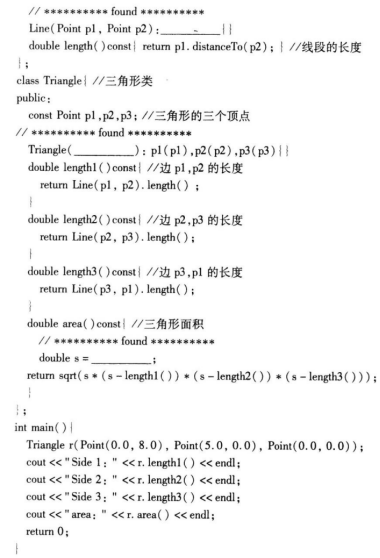 注意:只在横线处填写适当的代码,不要改动程序中的其他内容,也不要删除或移动“//****found*****”。