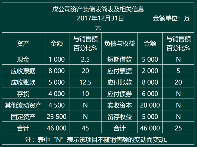 资料二:戊公司2017年销售额为40 000万元,销售净利率为10%,利润留存率为40%。预计2018年销售增长率为30%,销售净利率和利润留存率保持不变。