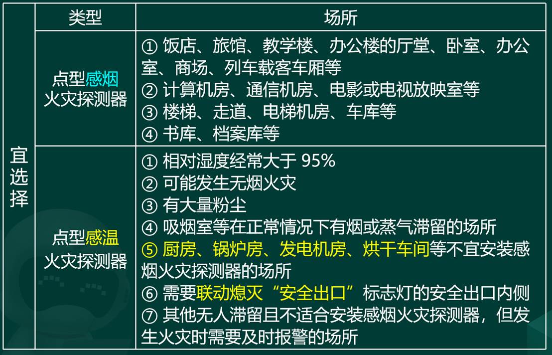 D.需要联动熄灭“安全出口”标志灯的安全出口内侧,选用感烟火灾探测器