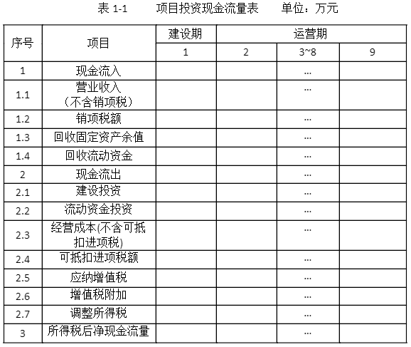 1.若企业产品不含税销售单价定为3500元/件,分别计算项目运营期第1年、第8年的应纳增值税与调整所得税,并编制拟建项目投资现金流量表1-1。