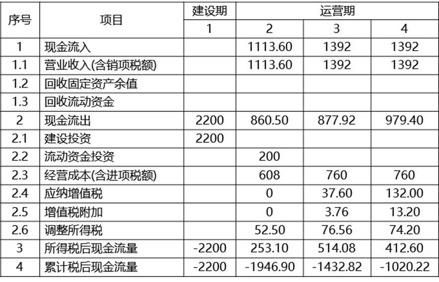 运营期第3年调整所得税={1200-[(760-60)+190]-132×10%+0}×25% =74.20(万元)