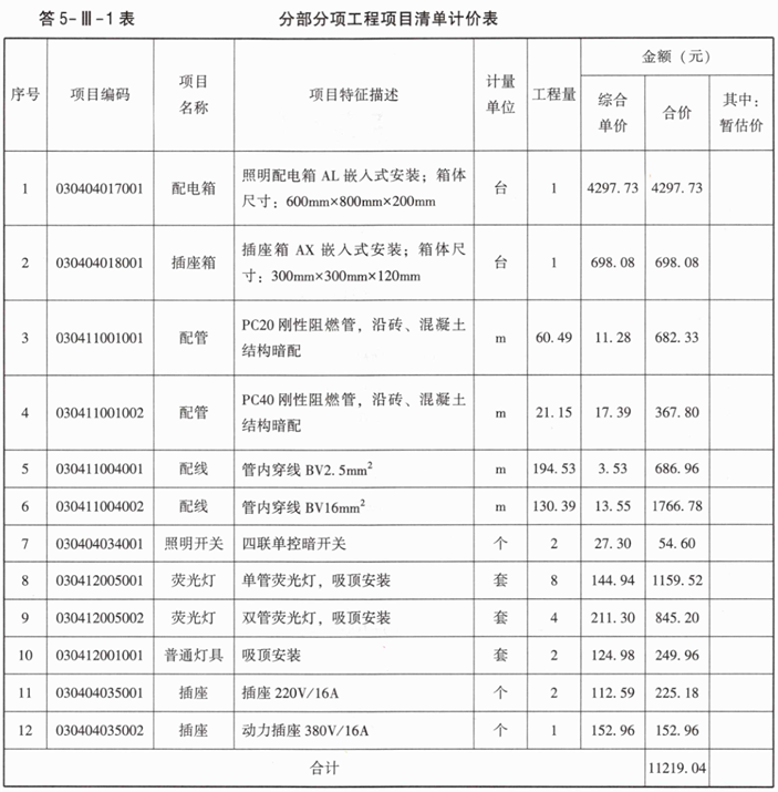 配电箱的综合单价=[131.50×(1+40%+20%)+37.90]+4000+[1.20×(1+40%+20%)+1.44]×3+[2.50×(1+40%+20%)+3.87]×5=4297.73(元)