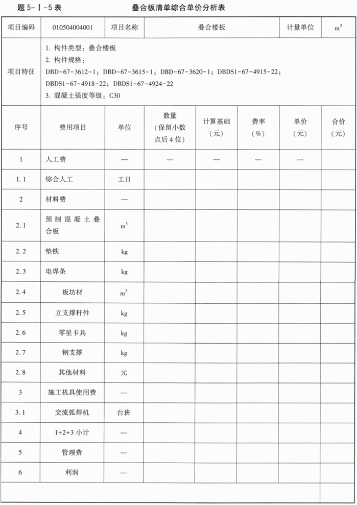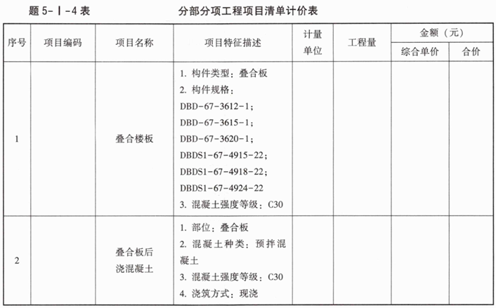 3.填写完成题5-I-5表、题5-I-6表中叠合板与后浇混凝土的综合单价分析表。