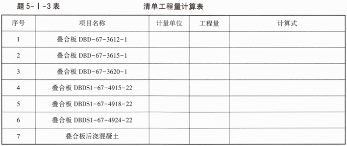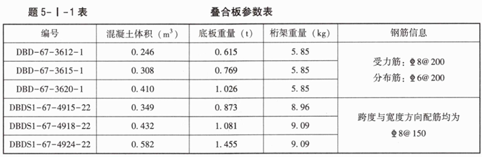 叠合板、后浇混凝土的定额详见题5-I-2表。