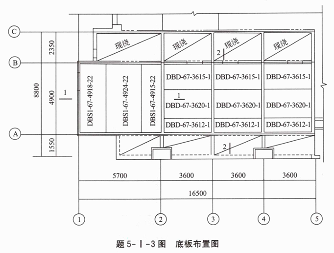 叠合板的支座条件详见题5-I-2图。根据设计计算,底板的布置详见题5-I-3图。叠合板的参数详见题5-I-1表。