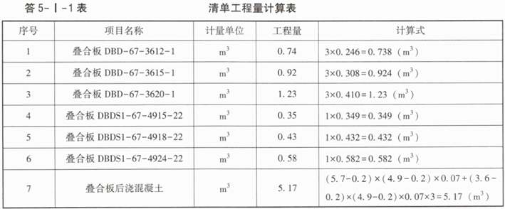 叠合板、后浇混凝土的定额详见题5-I-2表。