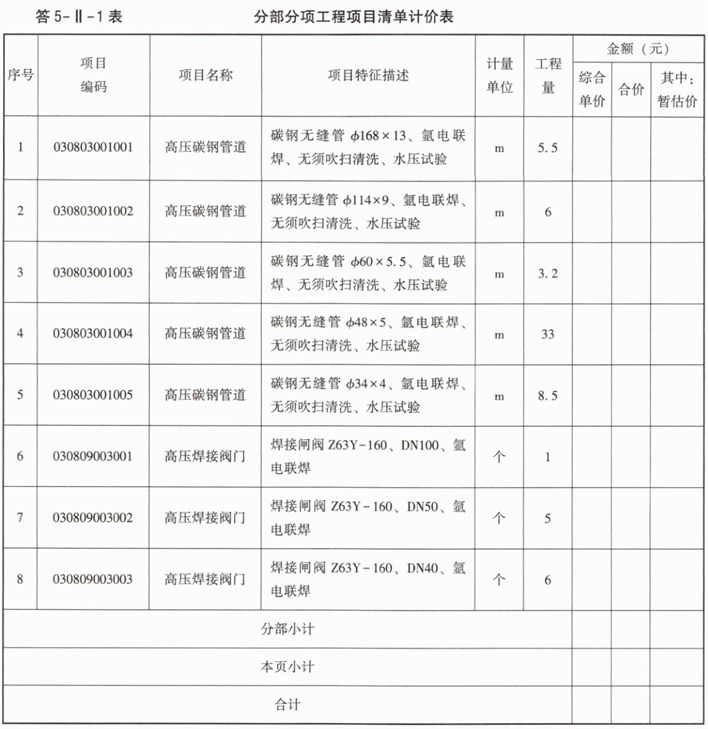 (2)φ114×9工程量计算式:1.2+2.4+0.3+0.64+0.96+0.4=5.90(m)